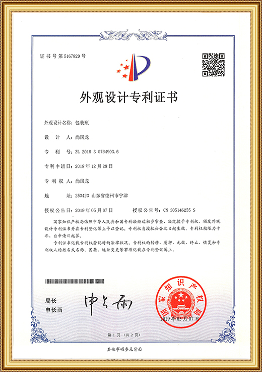 • 外觀設(shè)計專利證書